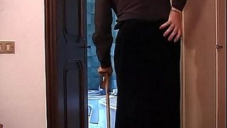 Naked cleaning. Family Naked stepdad and stepdaughter at home